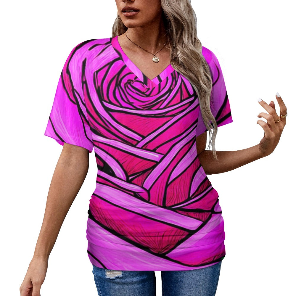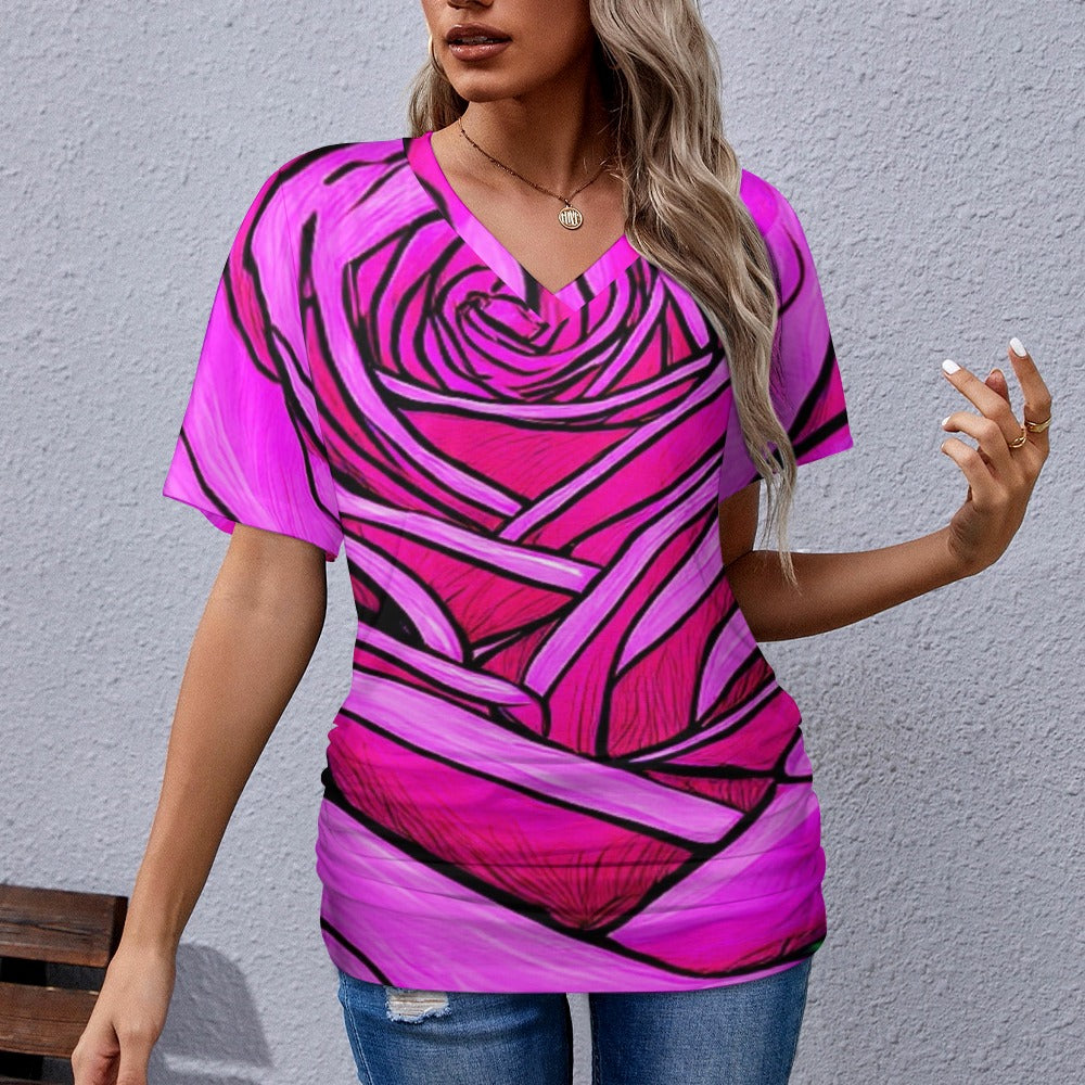 PREFERRED MATERIAL: Our V-Neck Short Sleeve T-Shirt is made of high quality polyester material which is soft and comfortable to wear. V-Neck Design: Classic sexy V-neck, with pleated design, very flattering. FASHIONABLE VERSATILE: Our tee fits any body type and is a very versatile summer piece with jeans, skirts or slacks. GREAT GIFT: A perfect summer gift for your family, wife or girlfriend, a must-have summer fashion item for women.